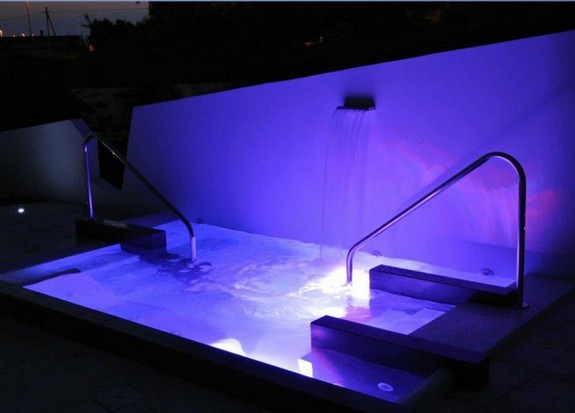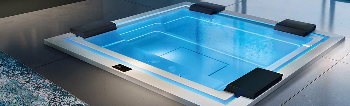 Sistema di filtraggio, riscaldatore con regolazione di temperatua, disinfezione ad ozono, cromoterapia.