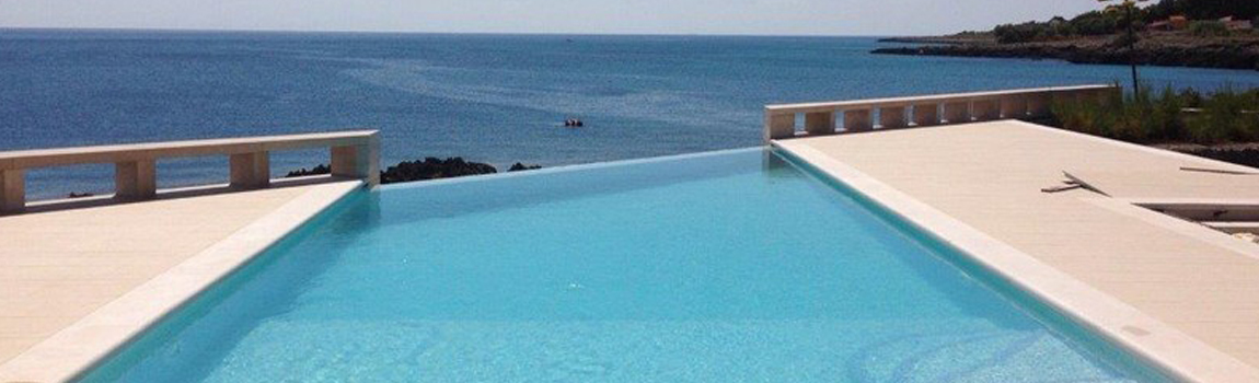 Piscine in muratura di ogni dimensione con sistema di circolazione Skymmer o bordo sfioro.